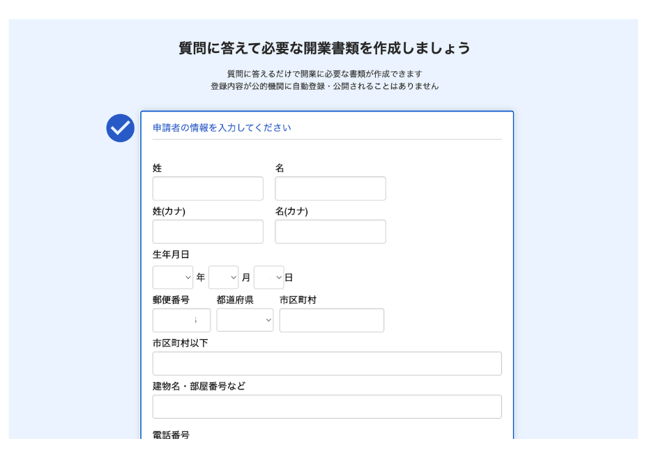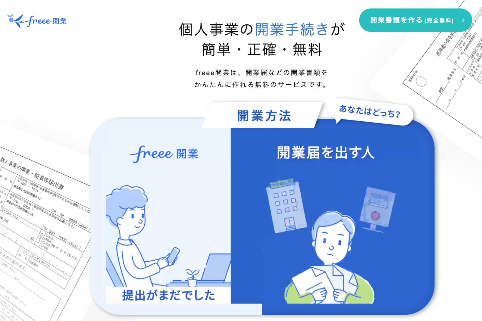 freee開業なら専門知識が無くても公的な書類が作成でき、しかも提出まで無料で完結します。
