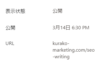 WordPressの場合は、投稿ページや固定ページの編集画面右側に表示されています。